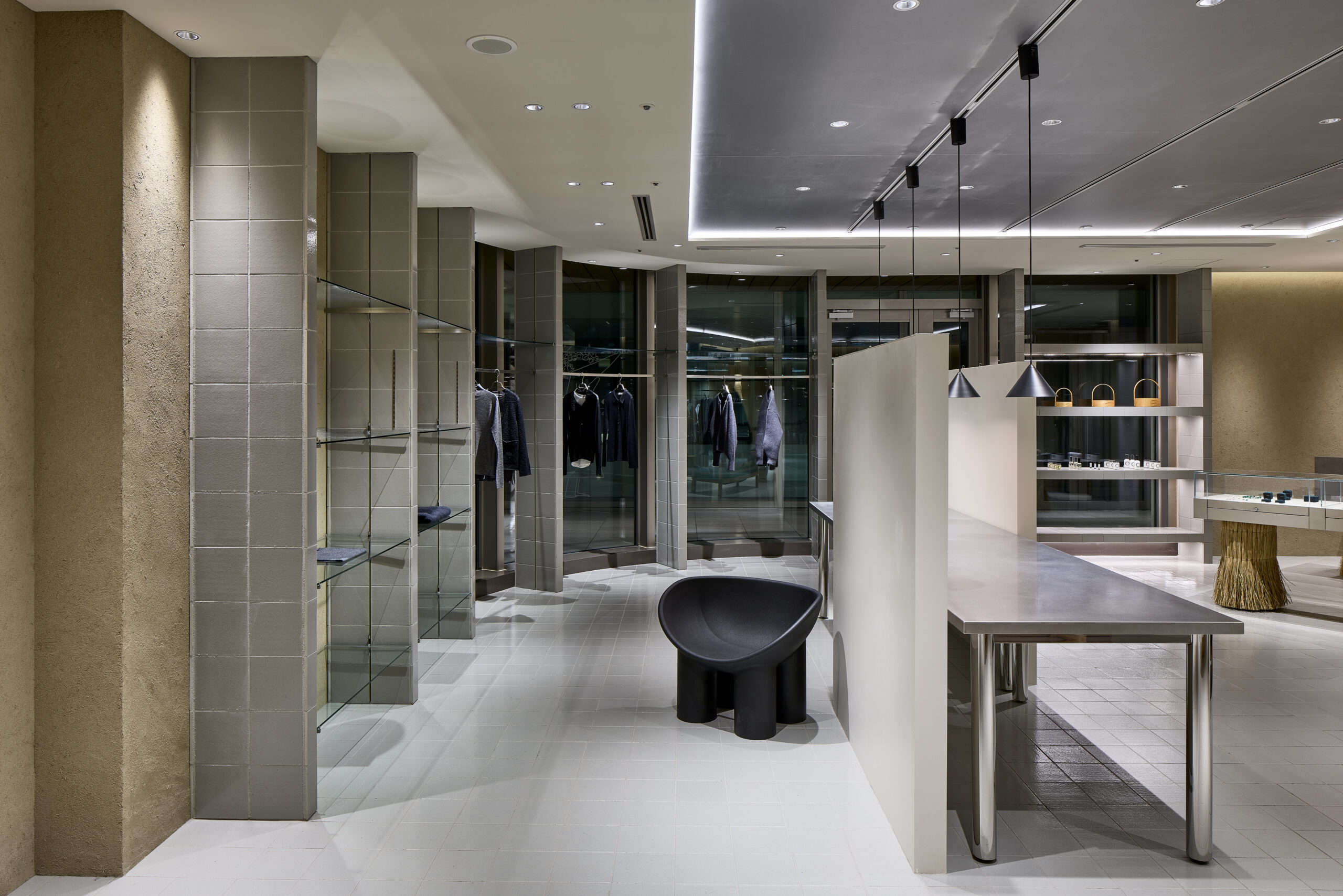 生活に密接に関わり、オーガニックやサスティナブルな取り組みに対しても意識が高いブランドである。設計テーマとして、天然素材や環境負荷が低い素材であること、食にまつわるストーリーがある素材などを念頭に空間を構築することを目指した。